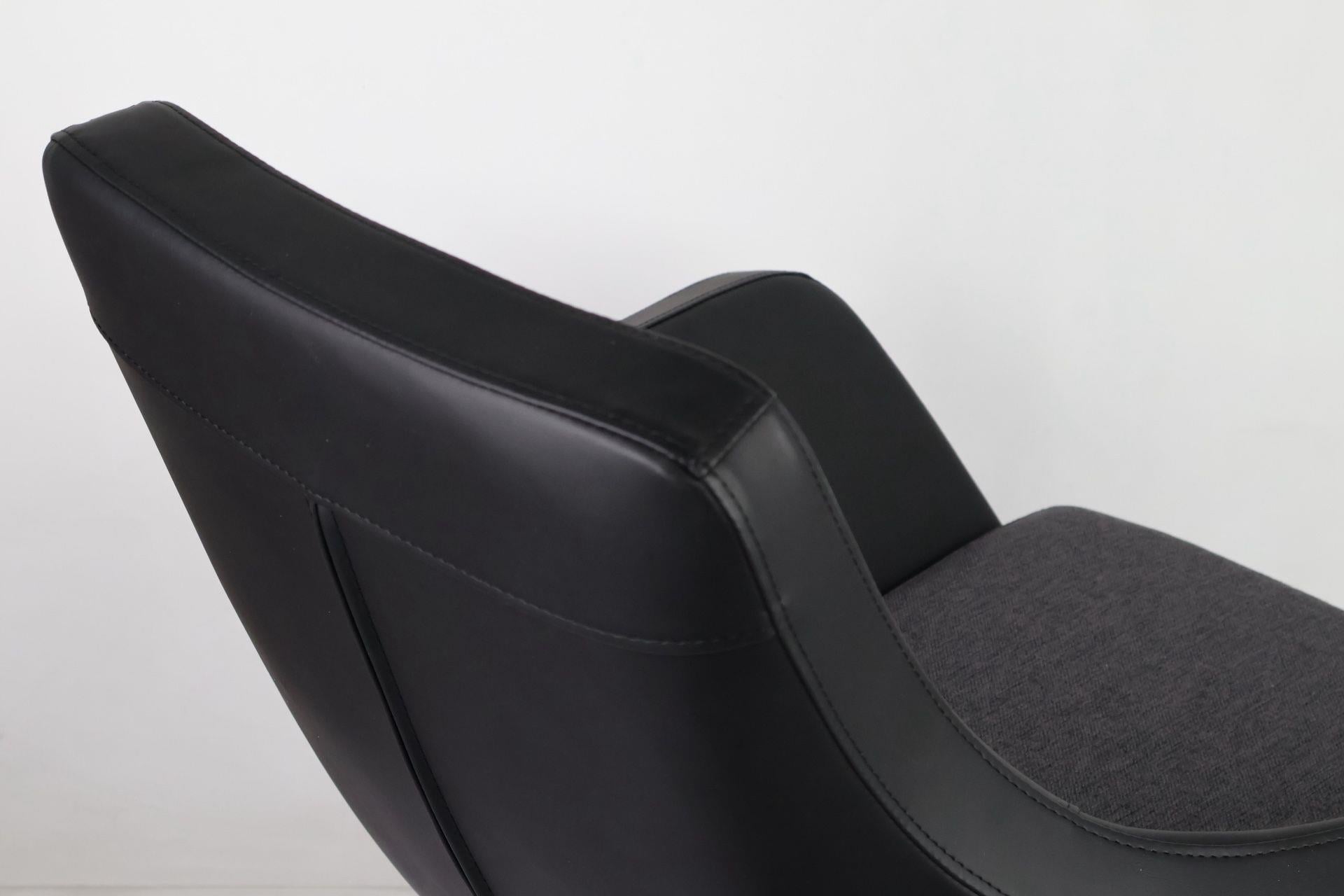 Van Berjer, dış yüzeyinde kullanılan premium siyah suni deri ve oturma yüzeyindeki şık antrasit kumaş detayıyla yaşam alanlarınıza ve ofislerinize modern bir hava katar. Sarmalayan geniş koltuk yapısı ve yüksek sırtlı ergonomik tasarımı sayesinde uzun süreli oturmalarda üst düzey konfor sağlar.